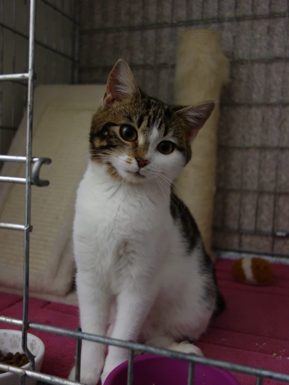 Martha kam als Fundtier ins Tierheim und als sie aufgegriffen wurde, war sie mutterseelenallein auf weiter Flur auf Gemeindeverbindungsstraßen unterwegs. Aber Martha war zutraulich, das heißt, sie muss bei Menschen gelebt haben, aber denen war offenbar ein Katzenleben nicht so wichtig, sonst hätten sie so ein junges Kätzchen nicht unbeaufsichtigt alleine draußen herumlaufen lassen.