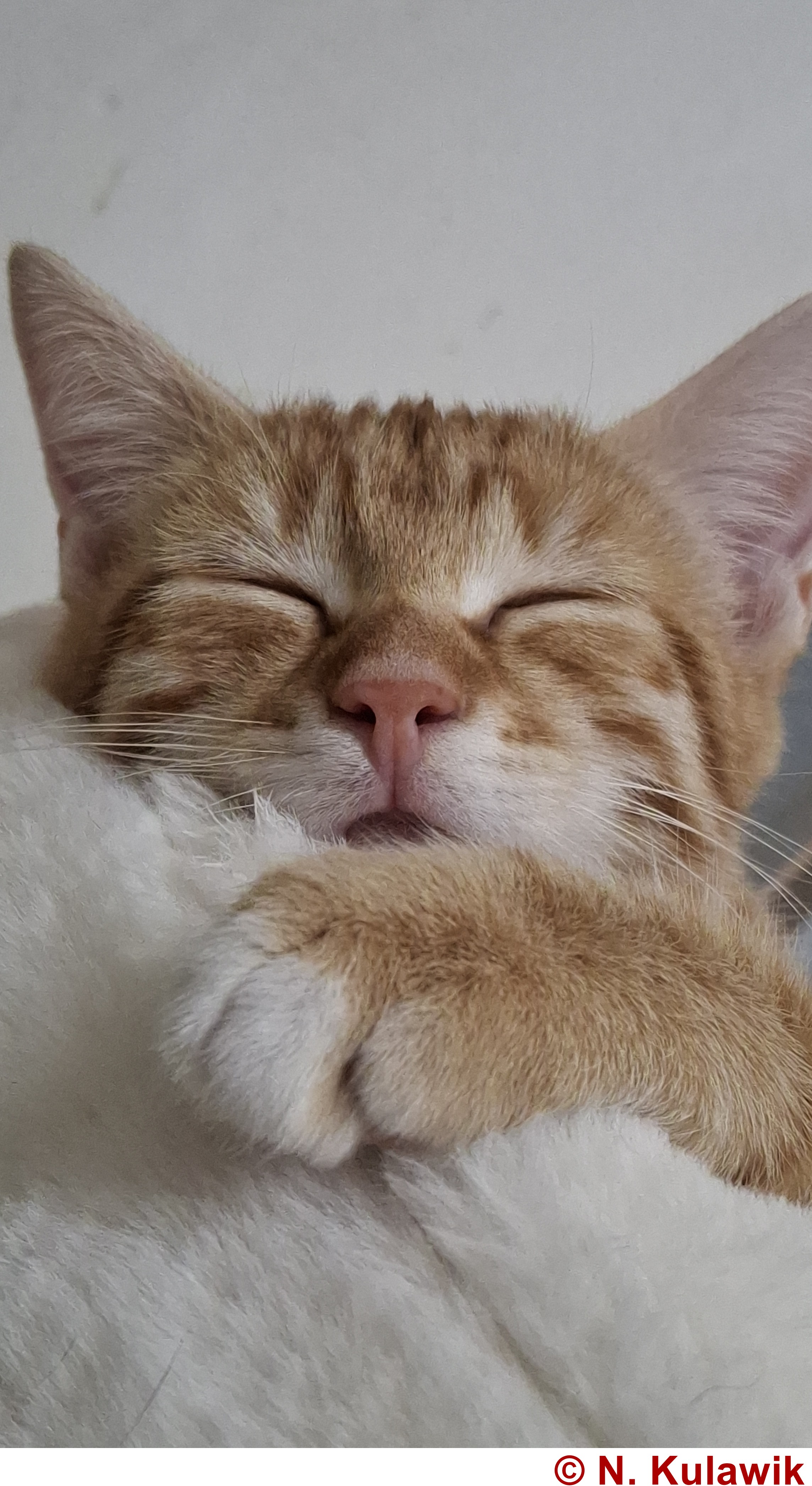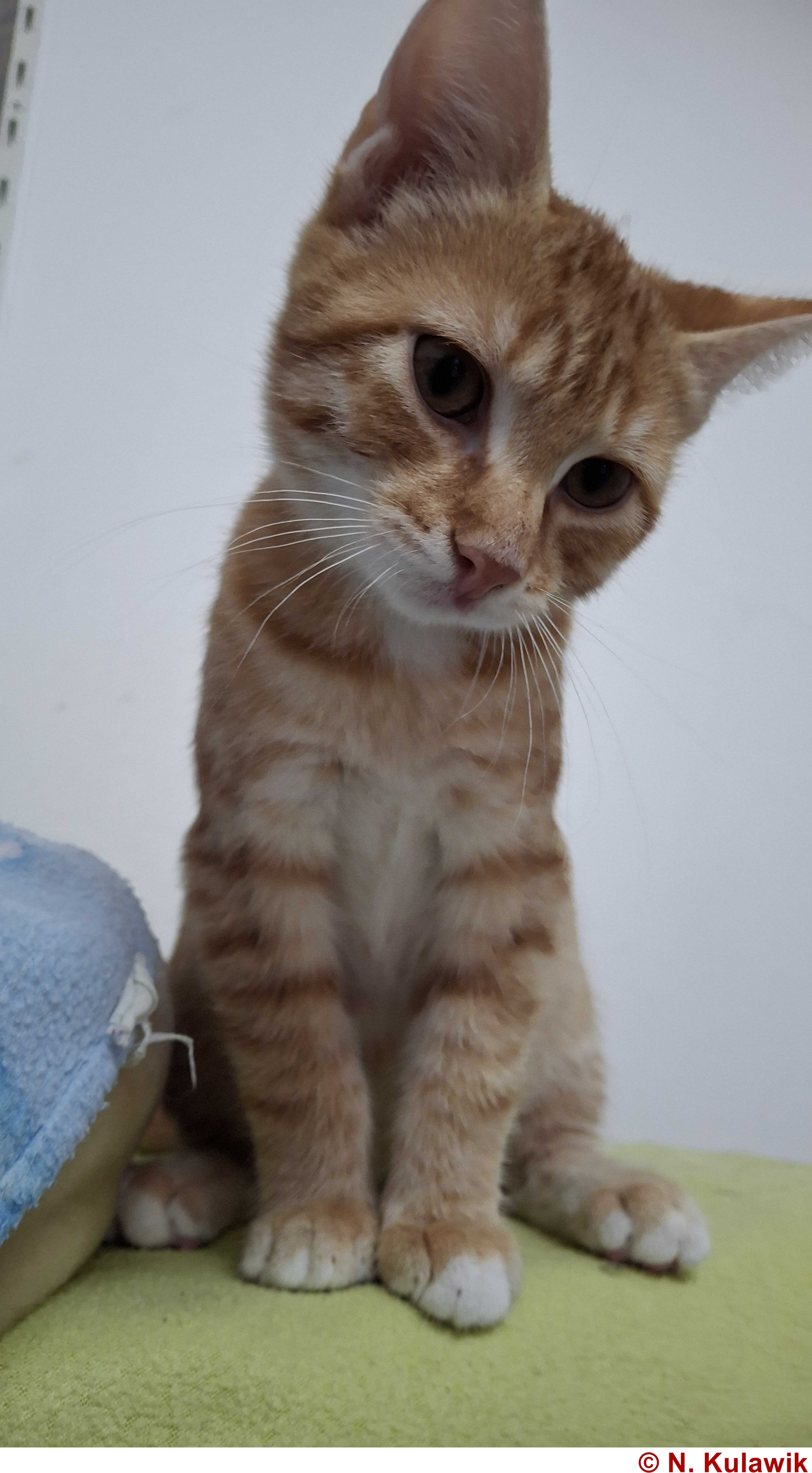 Als das Garfield-Double alt genug war, zog es in den Katzenkindergarten im Tierheim um und mischte anfangs die Truppe dort gehörig auf, denn als Handaufzucht fehlte ihm noch etwas das adäquate Sozialverhalten Artgenossen gegenüber. Doch das hat sich inzwischen stark gebessert und Menschen war der kleine Charmebolzen ohnehin von Anfang an stark zugetan.